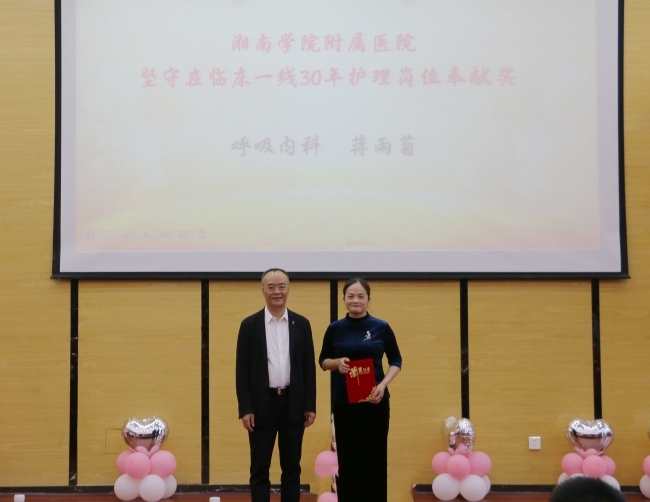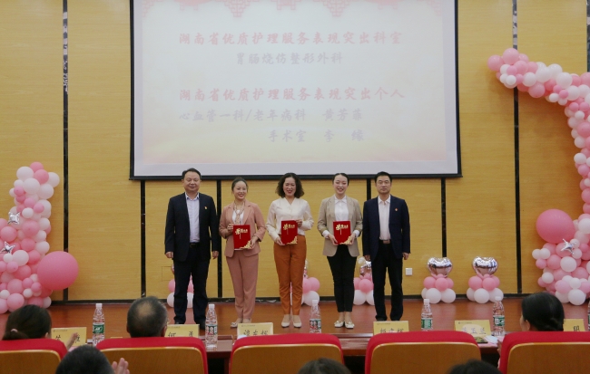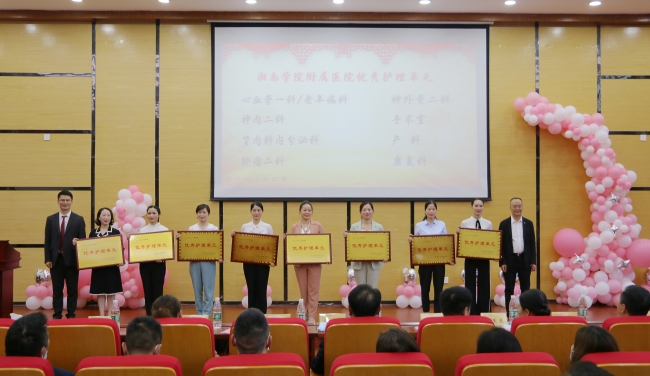 本次大会对湖南省优质护理服务表现突出科室、湖南省优质护理服务表现突出先进个人、郴州市优秀护士,医院优秀护理单元、优秀护理管理者、 “十佳护士”、 “临床护理综合技能培训竞赛”获奖个人与集体以及坚守在临床一线30年护理岗位“奉献奖”获得者进行了表彰,医院领导班子为获奖者颁奖,勉励大家珍惜荣誉,为医院发展再创佳绩。在随后的风采展示中,医院护理人员带来的礼仪表演《青春畅想》和诗歌朗诵《白衣天使,生命之光》更将整场大会推向高潮。