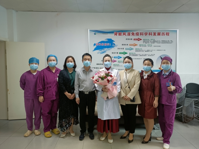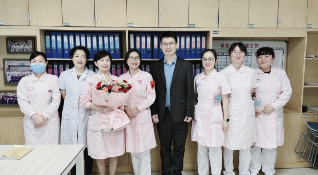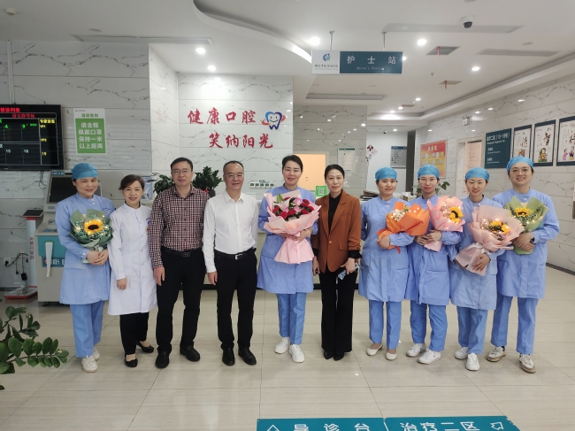 12日上午,医院领导班子来到各个科室,走访慰问了辛勤工作在临床一线的护理人员们,并为她们送去了鲜花和节日的祝福。