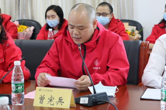 座谈会上,雷昌斌、陈晓春、徐初亮、段江华、曾宪兵等五名医疗队代表与大家分享了在抗疫一线的工作体会和感受。