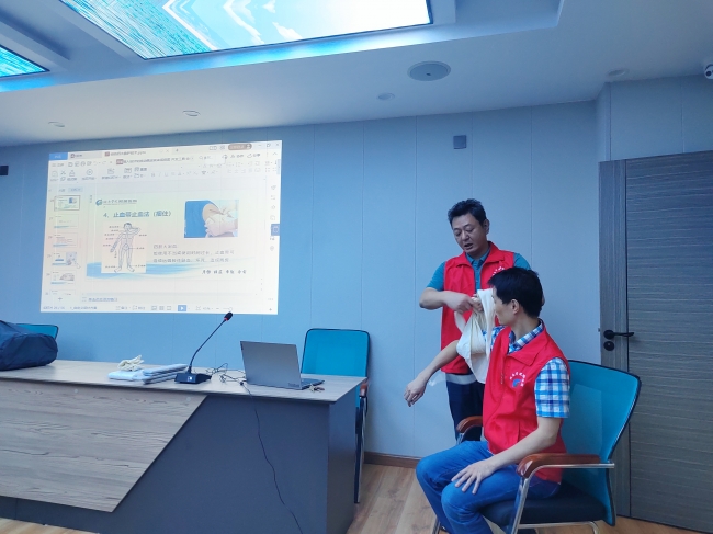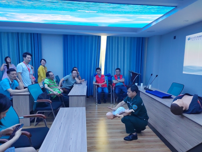 本网讯(通讯员 历冬辉)6月30日,我院急诊科主任袁斌云、刘枧荣主治医师、何斌主治医师等医务人员,前往郴电恒泰电力工程有限公司为其公司职工就工作生活中可能突发的各类创伤事故进行现场急救知识培训。