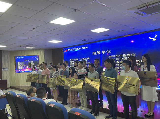 本网讯(通讯员 王志)为深化中医药产业融合,推动创新产品成果转化及应用,培养产、学、研人才队伍,2022年6月26日,由中西医结合学会脑心同治专业委员会主办的“脑心同治防治慢性病临床基地”揭牌仪式举行。会上宣布,“脑心同治防治慢性病郴州临床基地”成立并挂靠湘南学院附属医院。