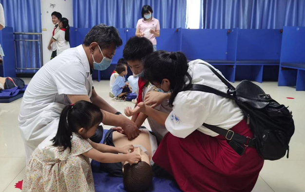 本网讯(通讯员 黄颖洁)暑期已至,炎炎夏日,正是溺水事故高发期,为保障孩子们暑假安全,提高防溺水意识,近日我院急诊科主任袁斌云和护士长白素娟带领急救团队为第十九完小二(6)班举行了一场别开生面的防溺水演练活动。