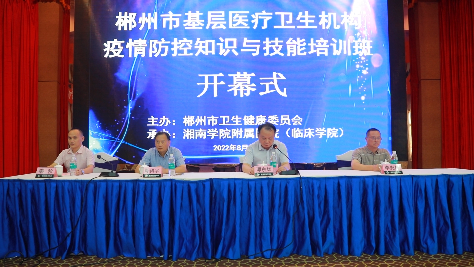 本网讯(通讯员 张媛)8月15日下午,由郴州市卫生健康委主办、湘南学院附属医院(临床学院)承办的郴州市基层医疗卫生机构疫情防控知识与技能培训班在郴州国际大酒店开幕。郴州市卫生健康委党委副书记、副主任肖和平,郴州市卫生健康委基层卫生健康科科长李尧岗,湘南学院附属医院(临床学院)党委书记谭东辉等出席培训班开幕式。开幕式由湘南学院附属医院副院长秦牧主持。