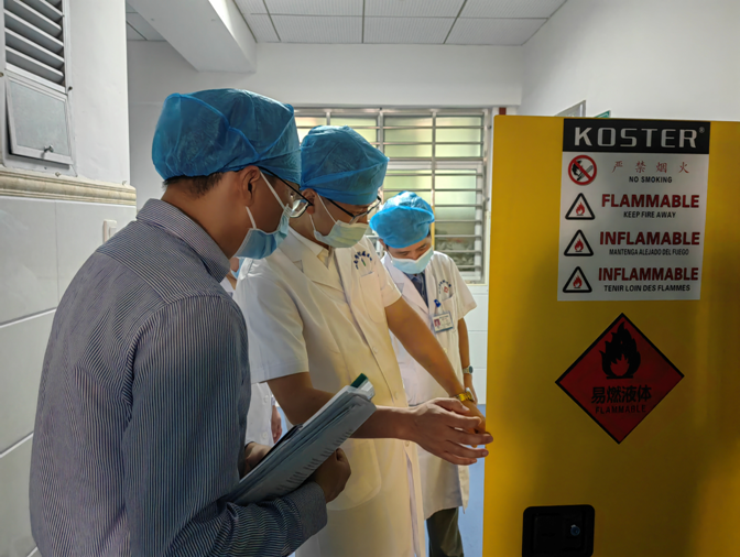 本网讯(通讯员 陈郴)为加强我院病原微生物实验室生物安全管理工作,营造安全稳定的环境,确保党的“二十大”胜利召开,根据《湘南学院附属医院安全生产风险隐患排查行动方案》要求,9月27日,副院长雷昌斌带领科教部人员对医学检验中心、临床医学研究中心、Ⅰ期临床实验室进行了专项督查,做到全人员、全领域、全方位、全覆盖排查。