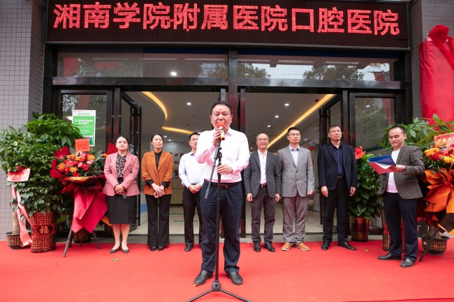 上午8点28分,党委书记谭东辉、院长颜建辉、口腔医院主任范红燕共同拉开了湘南学院附属医院口腔医院的牌匾,标志着湘南学院附属医院口腔医院正式成立。该院的成立对湘南学院口腔医学专业的申报有着重要而深远的影响。