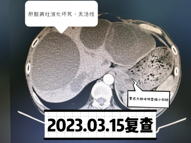 去年10月,作为家中的顶梁柱,李先生不幸在上级医院诊断为胃癌并多发肝转移患者,考虑生存期不超过3个月,患者及家属决定放弃治疗,回到宜章县人民医院肿瘤科行终末关怀。湘南学院附属医院肿瘤科史巧静副主任医师在驻点宜章县人民医院查房时,仔细分析了李先生的病情,考虑该患者诊断可疑,其病理表现与典型胃癌不相符,考虑胃间质瘤可能性更大。