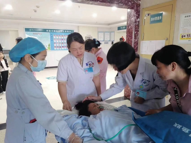 随着呼啸而来的急诊120警笛声,早已等候在接诊点的产科李庆华副主任医师、黄燕主治医师、肖慕华助产师等立即对产妇开展救治。“当时发现产妇呼之不应、牙关紧闭、全身发绀,还伴有间断抽搐,患者已经命悬一线,危在旦夕,我们经初步评估病情后立即启动危重孕产妇抢救流程,并上报医院医疗总值班。”李庆华回忆说。
