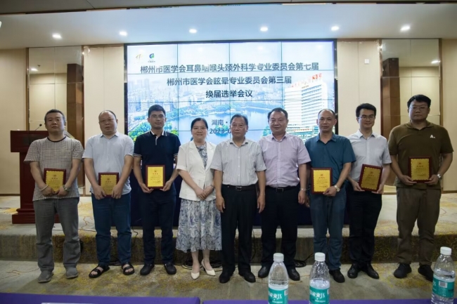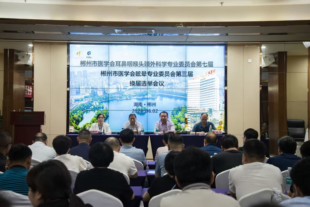 本网讯(通讯员 龙志清)2023年6月2日-6月3日,郴州市医学会第七届耳鼻咽喉头颈外科专业委员会和第三届眩晕专业委员会改选暨听力与眩晕新技术学习班在湘南学院附属医院举行。湖南省医学会耳鼻咽喉头颈外科专业委员会主任委员邱元正教授、郴州市卫健委党委书记曾忠良、湘南学院附属医院党委书记谭东辉教授出席了会议,来自郴州市20家医疗机构120余人参会。