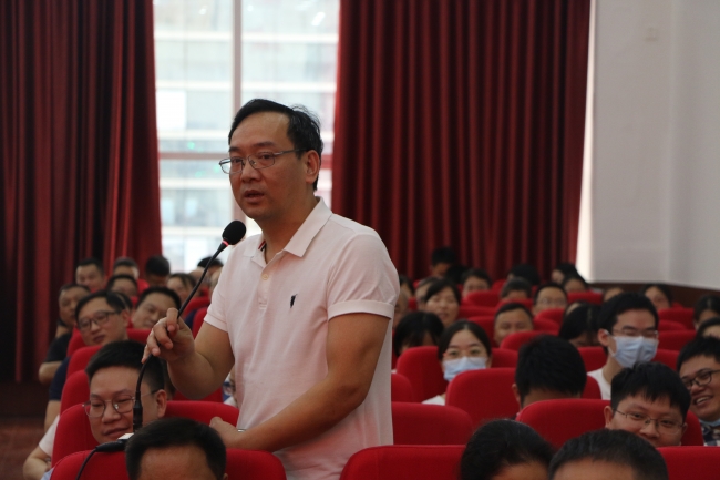 党委书记谭东辉随机抽取了三位中层干部,现场就三级医院评审相关知识进行提问,深刻引导大家正确理解评审意义及标准,要求大家要有决心、有信心、有沉心,人人参与,每分必争,责任压实,敢于担当,充分做好复审应对准备,全力以赴攻下三甲“复审”工作堡垒。