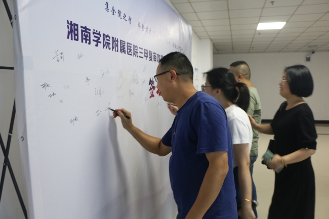 全院各科室、部门负责人在会议签名墙上,进行了表决心签名,保证将以高水平、高标准、高质量的要求完成医院的各项工作,以优异成绩通过复审。