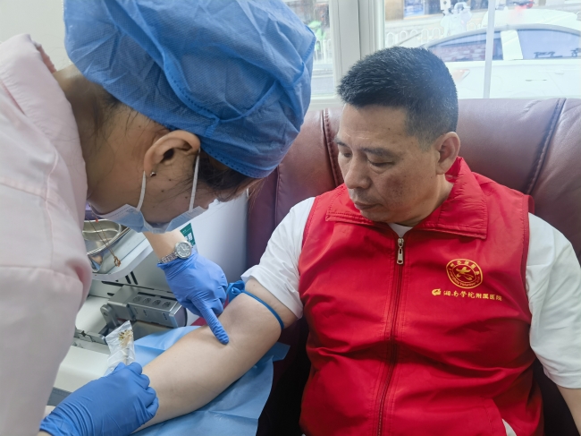 本网讯(通讯员 张媛)在中国共产党成立102周年华诞之际,7月1日上午,湘南学院附属医院献血志愿服务队在党委委员、副院长张明的带领下,参加市卫健委和市中心血站组织的“一颗红心向党 满腔热血为民”无偿献血志愿服务活动。