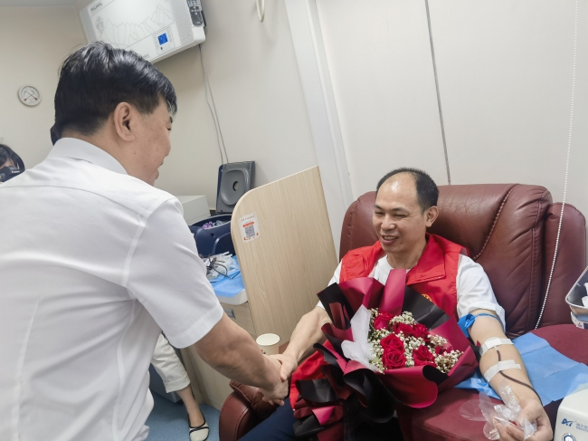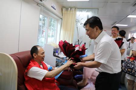 涓涓细流汇成大海,汨汨热血聚成大爱。市卫健委党委书记曾忠良看望慰问了我院正在献血的临床十党支部书记邓忠。曾忠良表示,感谢广大党员干部参加无偿献血活动,用实际行动彰显党员的责任与担当,用“热血红”点燃“党旗红”的最美色彩,诠释了医务工作者热心公益和医者仁心的高尚情怀。