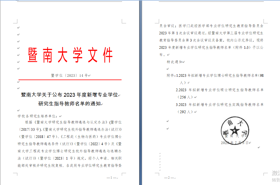 此次研究生导师队伍的壮大,是湘南学院附属医院(临床学院)高层次教育水平的重要体现,有效充实和提升了我院科教人才队伍,促进了医院在高层次医学专业人才的培养,有力促进了医院研究生培养工作的开展,为研究生授权点的建设积累了经验。医院后期将持续加强与暨南大学在高层次人才培养方面的合作,继续推进教师队伍的高质量建设,努力做好博士、硕士研究生培养工作,全面提升学科建设水平。