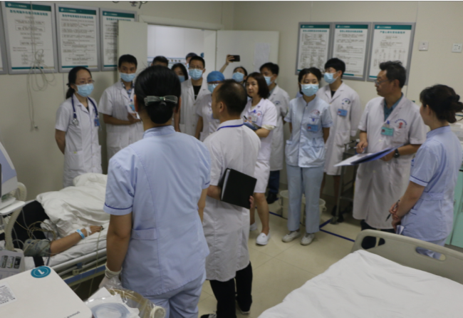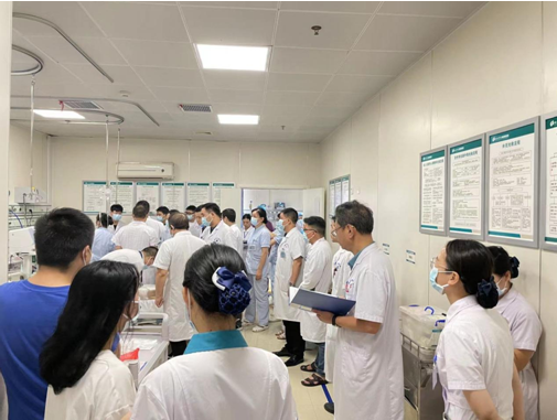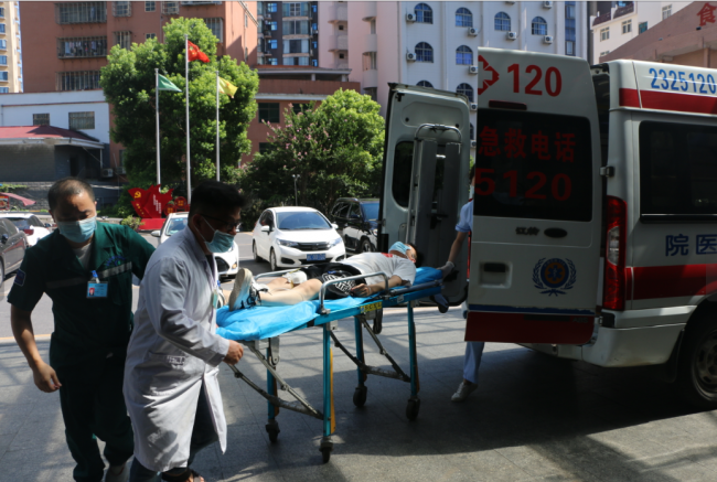 7月15日上午10:00,医院邀请郴州市卫健委医政医管科科长李满英出席群体性急性创伤应急的演练现场进行现场指导。演练以郴州市内某工地发生建筑物倒塌,伤者数量不详为脚本。120急救中心接警后,立即派车赶赴现场,急救人员到达现场后立即实施分类救治,进入院内后召开多学科紧急会诊和开通急诊手术绿色通道。