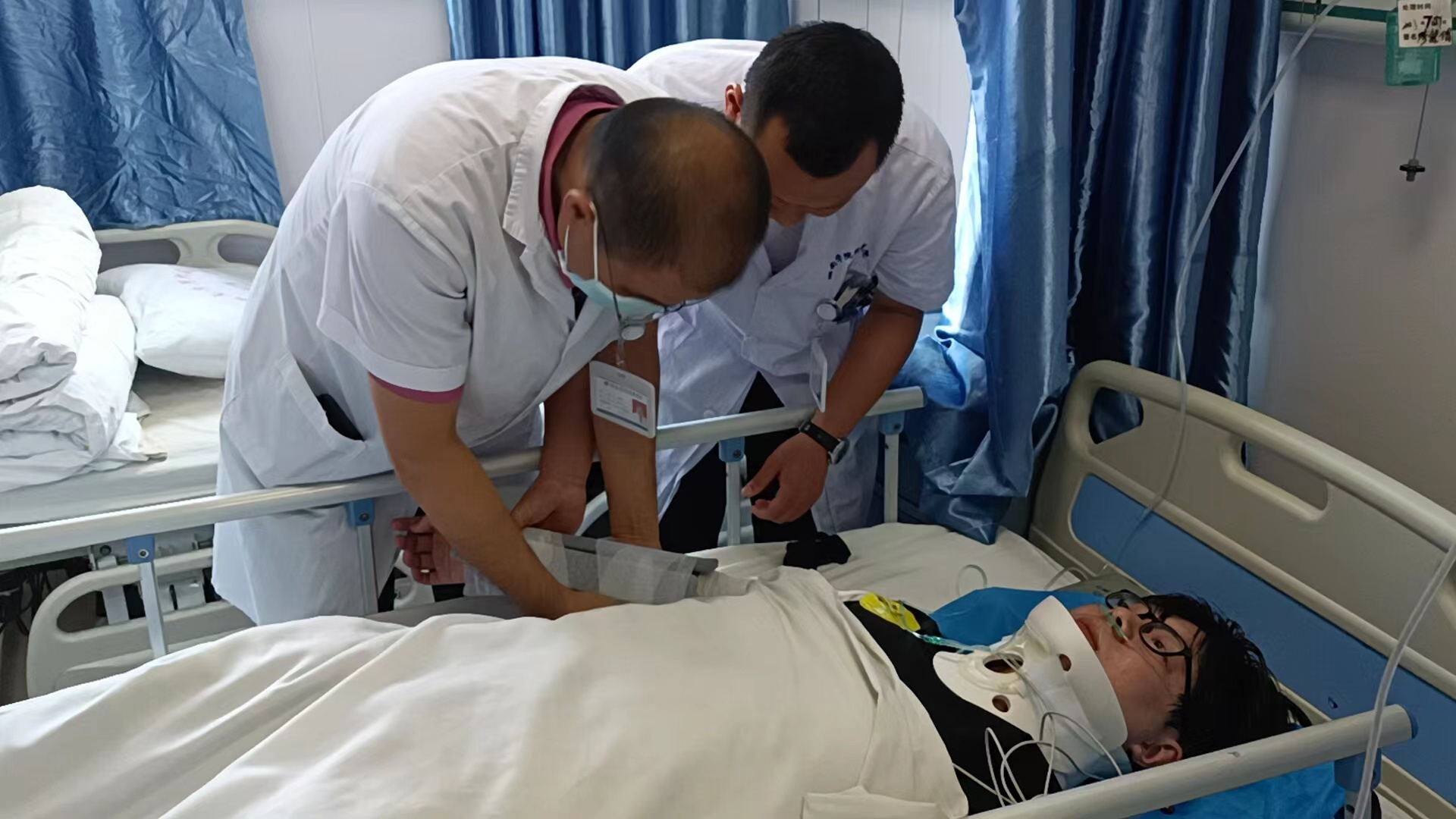 当天15:20,演练正式开始,“郴州市内某工地发生建筑物倒塌,伤者数量及具体情况暂时不详,请立刻出车!”急诊科120调度室接到郴州市120急救指挥中心急救指令后,立刻赶往现场。抵达现场后,急救医务人员快速检伤、评估,有针对性急救,并及时汇报现场情况。“报告组长,此次共有9名伤者,红2,黄2人,绿5人,请求增援。”