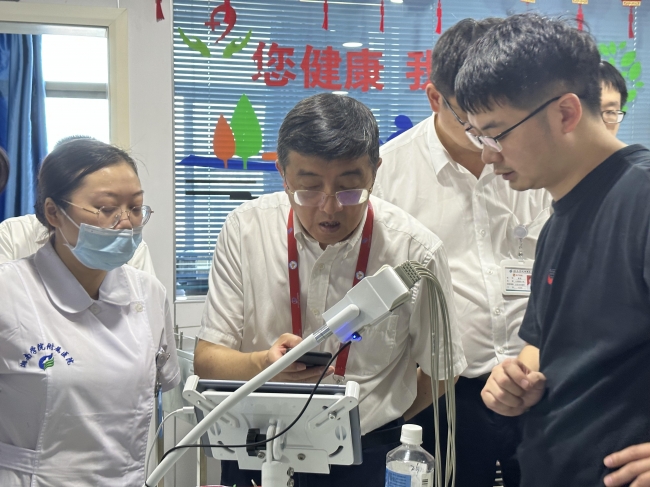 会上,王志华代表郴州市卫健委对专家组的到来表示热烈欢迎。方唯一一行首先听取了湘南学院附属医院胸痛中心医疗总监李维军对医院胸痛中心建设情况的汇报,并与郴州市卫健委相关领导就胸痛中心全域化建设进行了深入交流。随后,专家组通过查阅资料、交流访谈、模拟演练、提问考核等方式,详细核查了急诊科、介入手术室、心内科、CCU等部门,认真了解了胸痛中心在区域网络建设、相关人员培训、质量控制与分析、胸痛信息化系统运用等方面工作开展情况。方唯一教授指出,胸痛中心的创建和发展是深化医疗卫生体制改革,造福群众民生的重大举措,申请认证医院要善于发现问题,解决问题,明确“三会”开展的目的,进一步加强与网络医院的沟通交流,切实完善救治流程。