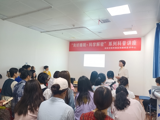 会上,汤永红为湘南学院附属医院授牌“健康睡眠•三湘行”睡眠医学中心培育单位,并对医院睡眠中心建设工作给予高度认可。随后,湖南省睡眠研究会理事长汤永红教授、秘书长张平教授、南华大学附属南华医院睡眠医学中心唐颖峰、湘南学院附属医院崔晓瑞博士等,分别在现场开展了精彩纷呈的睡眠医学学术讲座、科普讲座和健康义诊。与会嘉宾还实地参观了湘南学院附属医院医学影像人工智能湖南省重点实验室,并针对睡眠障碍的基础与临床研究开展了交流研讨,大家纷纷表示此行受益匪浅。
