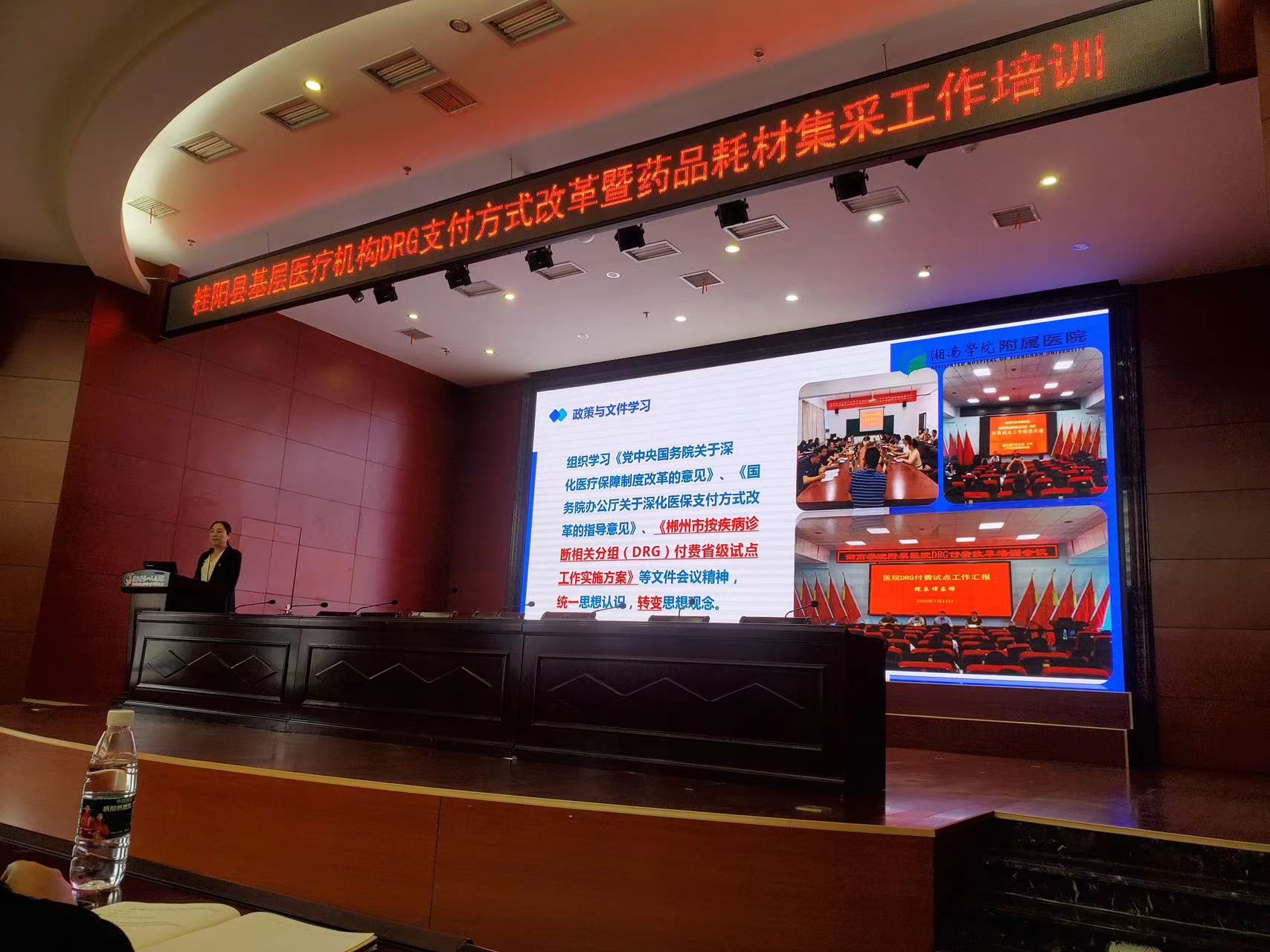 本网讯(通讯员 刘志萍)为全面落实国家DRG支付方式改革三年行动计划,加快推进全市DRG支付方式改革进程,提升基层医疗机构医保政策业务、系统建设和编码水平,在市医保局的统筹指导下,10月11日、12日,湘南学院附属医院作为郴州市第一批DRG支付方式改革试点医院及市区域医学教育基地,为嘉禾、桂阳两县进行联点指导,分别开展了基层医疗机构DRG支付方式改革工作培训。两县医保局、医保经办机构相关人员、基层医疗机构主要负责人及负责医保、病案、编码、信息、药品耗材采购的工作人员参加了培训。