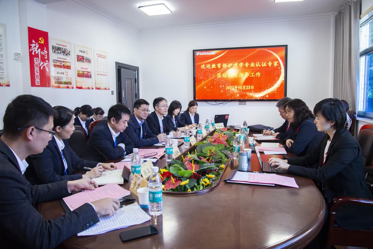 本网讯(通讯员 罗琳)10月23日,教育部护理学专业认证工作委员会委员、南方医科大学护理学院张立力教授,教育部护理学专业认证工作委员会委员、广西医科大学护理学院韦长元教授,教育部护理学专业认证工作委员会秘书处专职秘书王冬梅等三位教育部护理学专业认证专家莅临我院考察临床护理教学工作。湘南学院党委委员、纪委书记尹季,医学部副部长王彬,护理学院副院长曹文静陪同专家组参加了本次考察工作。湘南学院附属医院(临床学院)院党委副书记、院长颜建辉,党委委员、纪委书记蒋玉兰,党委委员、副院长雷昌斌出席了会议。