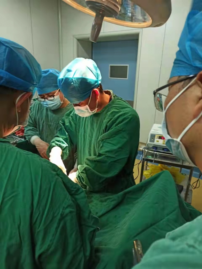 “病人不是在永州市区,而是在下面的一家县级医院,路途比较遥远,抵达当地的时候已经是晚上九点左右,当时患者的累积出血量已经达到了将近3000ml。” 周定中主任说,“我们一到当地医院,就立即开展救治工作,迅速完成血管造影检查和建立中心静脉通道之后,连夜为患者实施了紧急手术。”