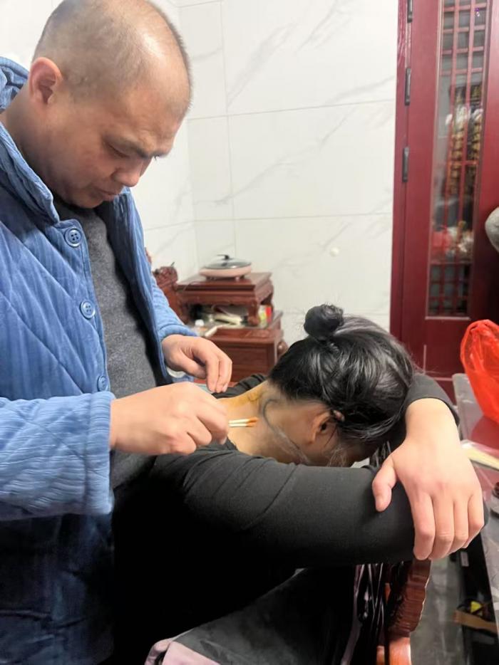 义诊当天,前来就诊的乡亲络绎不绝。其中,一位年逾七旬的老人格外引人注目。长期的关节疼痛让老人行动极为不便,听闻唐新文回来举办义诊,老人早早便在家人的搀扶下赶到现场。唐新文见到老人后,立刻为他进行了详细的检查。经诊断,老人患有严重的关节炎。唐新文不仅为老人制定了个性化的治疗方案,还耐心地亲自示范康复锻炼的方法,一边讲解动作要领,一边叮嘱老人注意事项。老人满含感激,紧紧握着唐新文的手,声音颤抖地说道:“孩子啊,你真是咱乡亲们的大恩人!以前去城里看病,路途远、手续繁琐,还花费不少钱,今天在家门口就能得到这么好的诊治,太感谢你了!” 老人的话语,道出了在场每一位乡亲的心声。