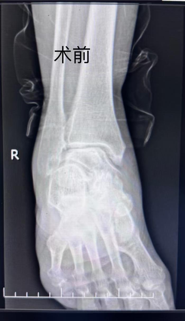时间回溯到十年前,欧阳阿姨因一次不慎摔跤导致踝关节扭伤,加上长期高强度劳作,右踝关节损伤不断加剧。近两年来,疼痛愈发明显,VAS评分高达7-8分,她痛苦地表示“痛起来的时候,连简单的蹲下上厕所都成了奢望”。此前,她多次在外院就诊,均被建议保守治疗或实施踝关节融合术。但保守治疗效果不佳,又因年事已高,家人担心术后预后效果,一直拖延至今。