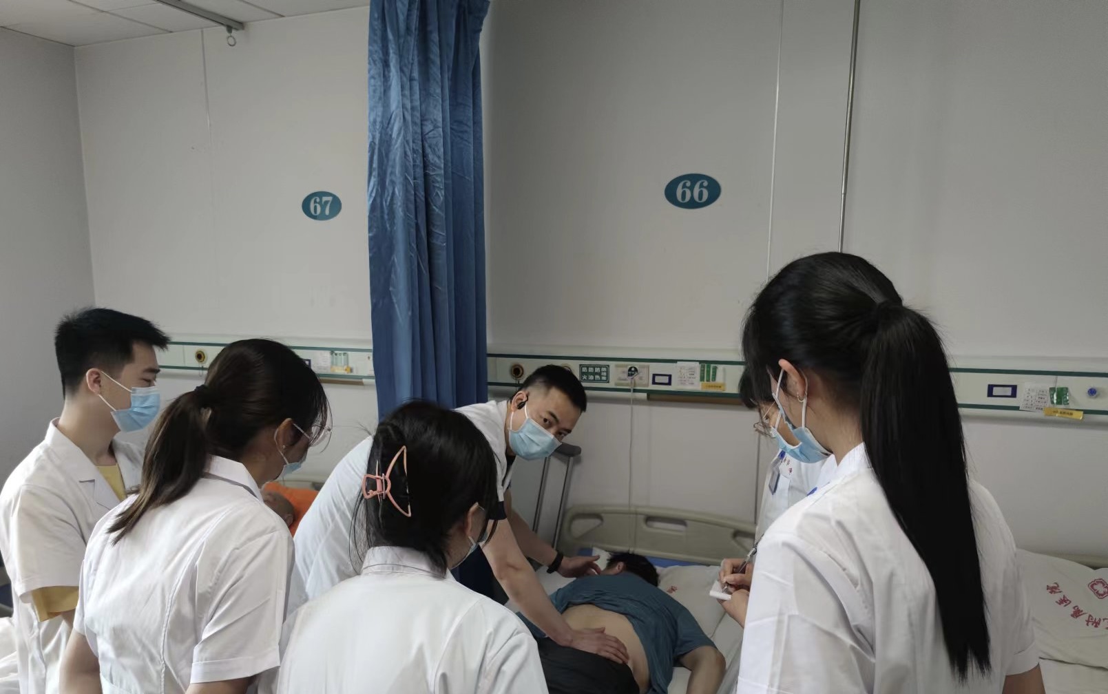 脊柱外科住院部32床患者周叔,已经是这个月第六位因为摘杨梅从树上摔落导致胸腰椎、肋骨多处骨折的患者了。来院时周叔腰背部疼痛已达8级,完全不能翻身,只能痛苦地卧床。脊柱外科主任李永斌带领团队,在静脉行脱水、消肿治疗的同时,积极完善术前准备,术前仔细研究检查结果,为周叔精心制定最佳手术方式,术中最大程度进行神经减压,为神经功能恢复创造最佳条件。6月6日,是周叔术后第一天,也是伤后第三天,患者神经功能恢复良好,已经能在床上缓慢自行翻身、活动,疼痛降至2级,早上查房时,周叔紧紧握着李永斌的手表示感谢。