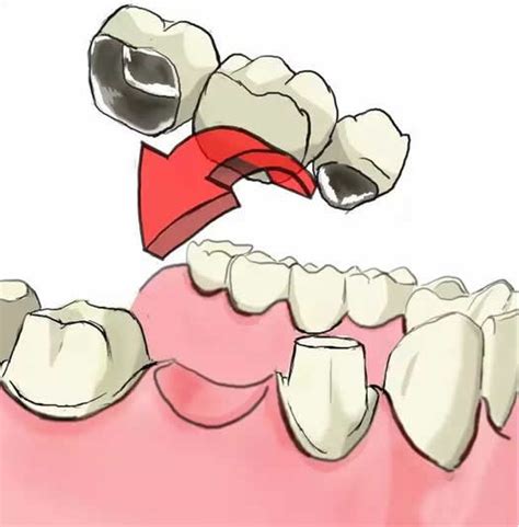 方法:把缺牙区两侧的天然牙磨小一圈,依靠天然牙为桥基修复缺失牙,适用于1-2颗牙缺失,邻牙稳固型态,排列正常。