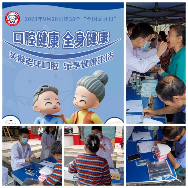 本网讯(通讯员 姚昊坤 图/何芳伟)为了保障广大人民群众的口腔健康,为进一步宣传普及中老年人口腔健康的科学知识,切实提高中老年人口腔健康素养和健康水平,9月15日上午,湘南学院附属医院口腔医院的医务人员积极响应中华口腔医学会号召,走进桂门岭社区,参加以“口腔健康、全身健康”为主题,关爱老年健康、乐享健康生活为副主题的口腔健康宣传月义诊宣传活动。