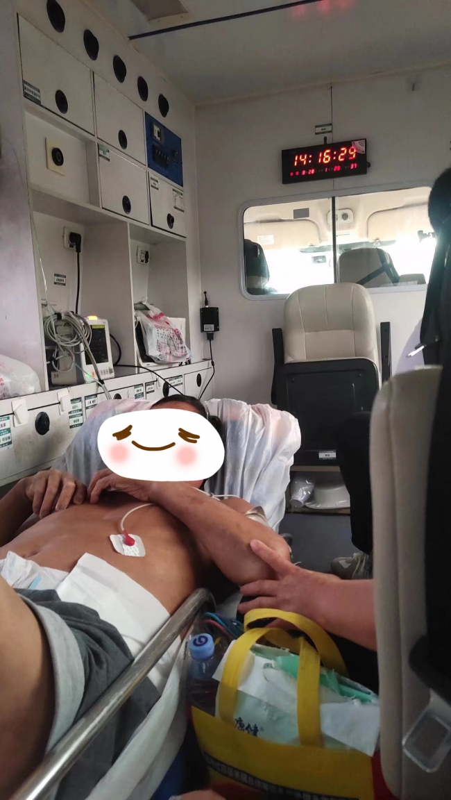 到达当地医院,陈国志医生和患者管床医生做好床旁交接病情、为患者做好院前转诊的评估,随后将病人抬上急救车,迅速赶往我院。一路上病人频发咳嗽、黄浓痰,呼吸急促,氧饱和度明显降低,陈医生立刻给病人接上了心电监护、氧气,嘱患者侧卧位防止窒息并稳定了他的呼吸。与此同时,接诊小组与医院的急救中心密切联系,将病人的状况报告给急救中心专家团队,共同分析病人病情,商讨治疗意见。