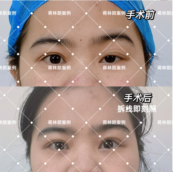 蒋林朗为黄女士面诊时进行了详细的术前检查,制定了个性化矫正方案,凭借丰富的临床经验,运用现代整形美容技术成功为该患者实施了提上睑肌腱膜缩短术,成功矫正了困扰黄女士多年的上睑下垂。在医务人员的精心照护和患者的积极配合下,黄女士术后恢复顺利,获得了良好治疗效果。