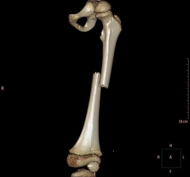 今年五岁的小男孩乐乐(化名),在家中阳台上玩耍时,不慎从二楼(约7米高处)摔下,致左大腿疼痛、畸形、活动障碍,家长立即送他到当地医院救治。X片检查提示,乐乐左侧股骨中段短斜型骨折,骨折断端成角重叠移位,患肢短缩明显,建议转上级医院行手术治疗。