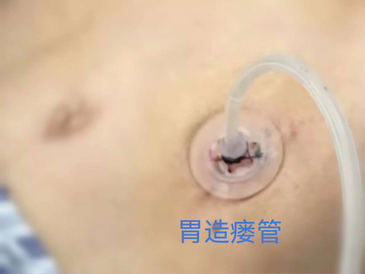 “这种手术创伤非常小,在局麻下就可以进行。简单来说,就是通过影像引导,在胃部用穿刺针打个小孔置入胃造瘘管。它就如同一张‘人造嘴’,通过这张‘嘴’把磨碎的食物注入胃内,从而有效的提供营养。这根管子在肚脐的左上方,正常穿衣后,外观与正常人无异。”周定中主任介绍。