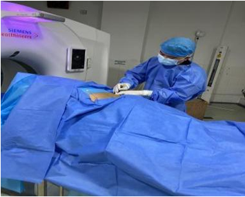 考虑到付爷爷年龄偏高,还合并有心肺系统相关疾病,医务人员反复讨论,慎重推敲,最终决定给付爷爷进行CT引导下无水乙醇交感毁损术。术后第一天患者疼痛感有所缓解,术后第二天疼痛明显缓解,被疾病困扰一年多的付爷爷感到了前所未有的轻松,夜间再也不用吹风扇了,双足也能穿袜子了,全家人都感到非常满意,十分感谢陈石卿和疼痛科团队为他解决了病痛,让他的晚年生活质量得到提高。