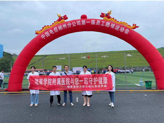 本网讯(通讯员 肖婕)9月1日下午,中国电信郴州分公司开展第一届员工趣味运动会,整个现场欢声笑语,电信员工们都非常享受这个愉悦的时刻。湘南学院附属医院健康管理中心应邀为此次运动会提供随行医疗保障,让运动员们在尽情挥洒汗水的同时安心、舒心、放心。