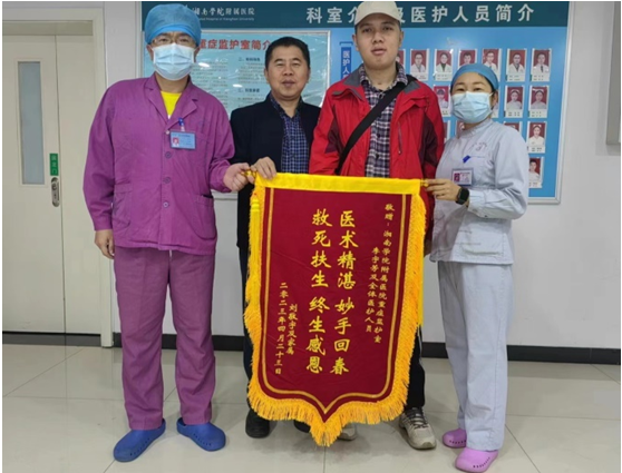 本网讯(通讯员 王教峰)4月23日,在湘南学院附属医院重症医学科发生了温馨的一幕。一位刚出院的小伙子将一面锦旗送到医护人员手中,感谢他们奋力救治,妙手回春,让命悬一线的他终于能站立行走。