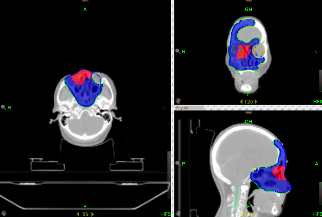2、对解剖结构复杂等难治性、特殊的恶性肿瘤更具优势。包括鼻咽部肿瘤、全颅骨放疗、头皮恶性肿瘤、胸壁恶性肿瘤等。