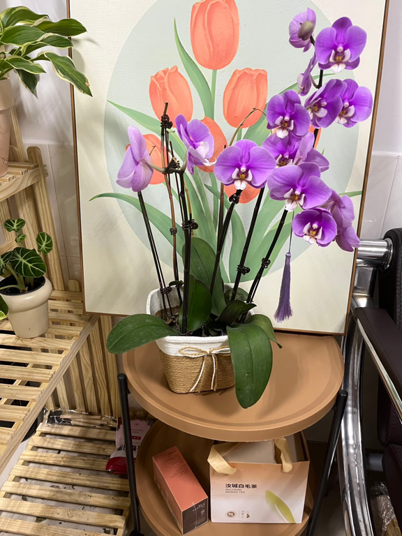肖阿姨的女儿是一位爱花之人,在肖阿姨过来复查时送上这盆蝴蝶兰,希望借助紫色蝴蝶兰的花语“事事顺心、心想事成”表达对尹朝晟团队的感激之情,表达对医护人员无私奉献的敬意。