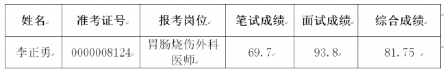 根据《湘南学院附属医院2022年公开招聘公告》要求,我院已完成报名、资格审查、笔试、面试、体检等工作,因胃肠烧伤外科医师岗位雷嘉伟考察环节放弃岗位造成岗位空缺,经医院党委会研究决定并报主管部门同意,现按照岗位综合成绩依次等额递补1次,并将入围体检递补人员名单公示如下: