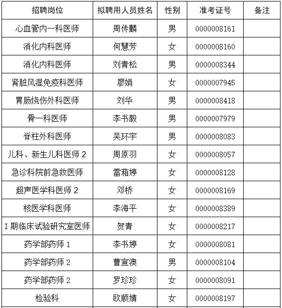 湘南学院附属医院2022年公开招聘拟聘用人员名单公示