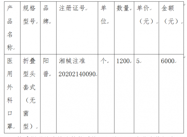 湘南学院附属医院于2022年1月10日收到湖南萃益医疗科技有限公司捐赠的下列物质: