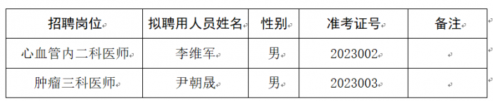 根据《湘南学院附属医院2023年高层次人才公开招聘公告》及有关规定,经报名、资格审查、考核、体检、考察等程序,经医院党委会研究,确定李维军等2名同志为2023年湘南学院附属医院高层次人才公开招聘拟聘用人选,现予以公示。