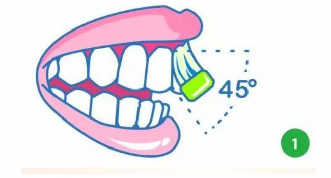 1、将牙刷对准牙齿与牙龈交接的地方。刷毛与牙齿大致呈45°角,同时将刷毛向牙齿轻压,使刷毛略呈圆弧状,与牙刷侧边及牙齿正面有相当大的接触。