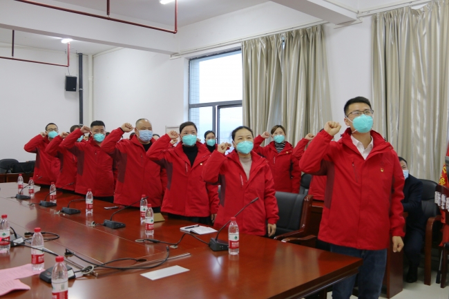 抗疫医疗队领队、医院党委委员、副院长雷昌斌代表21名队员庄重承诺:“坚决服从指挥,时刻发挥共产党员的先锋模范作用,勇于担当、不辱使命,保证圆满、高效、规范地完成支援任务,请党放心,请组织放心!”