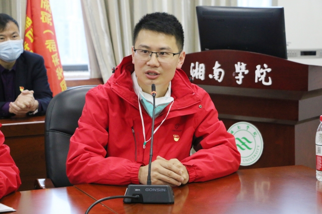 湘南学院党委书记邹宏如代表学校党委向出征队员表示崇高的敬意,感谢他们无畏艰险逆行而上的“大义之举、大德之行、大爱之为”,并叮嘱队员们牢记使命,不负重托;科学防控,规范救治;互相关照,保重身体;期待他们圆满完成此次抗疫任务,平安凯旋。
