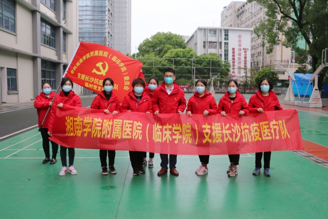 “我自愿出征,听党指挥,服从组织,不辱使命,不负重托,勇于担当,护佑生命,全力以赴抗击疫情。抗疫有我,请党放心!”21名队员铿锵有力的誓言,在湘南学院附属医院上空久久回荡。