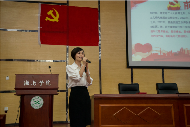 党委书记谭东辉在会上指出,迎接党的二十大胜利召开最好的方式,就是在对标争先中提升自我、加压奋进,以永不懈怠的精神状态和一往无前的奋斗姿态,凝心聚力谋发展,奋楫扬帆起新程。他强调,全院各党支部和党员要始终坚持党的领导不动摇,坚定捍卫“两个确立”,坚决做到“两个维护”;要始终坚持实施高质量党建工程,走出一条高质量党建统领高质量发展的新路子;要始终强化真抓实干的行动自觉,在建设特色鲜明的医教研并重的现代化医院中当好中流砥柱、展示先锋形象。
