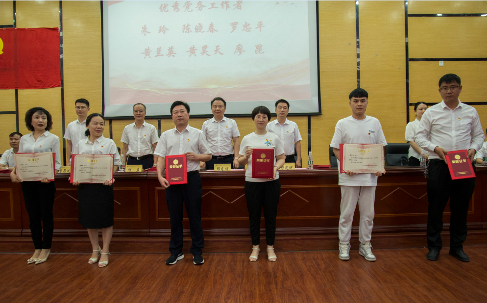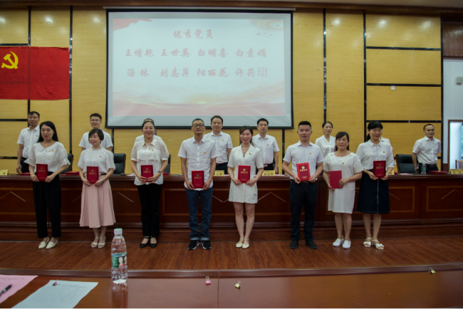 在随后的表彰大会上,对6名优秀党务工作者、34名优秀共产党员以及微党课竞赛获奖选手进行了表彰并颁发证书。神经外科主任罗忠平、发热门诊白明喜分别作为优秀党务工作者代表、优秀共产党员代表发言。