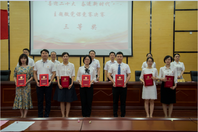 小故事诠释大道理,小话题折射大主题。选手们在激烈的微党课比赛中互相学习,拼搏进取,营造了医院全体党员一起学习党史的浓厚氛围,表达了对党忠诚的坚定理想信念和对医护工作的热爱,展现了新时代湘南学院附属医院(临床学院)职工立足本职,勇担当、争先锋的精神风貌和良好风采。经过激烈的角逐,最终评选出一等奖1名,二等奖2名,三等奖3名。