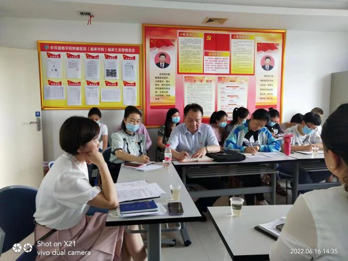本网讯(通讯员 阳丽花 张媛)春日融融好时光,学习打卡正当时。我院临床七支部把“第一议题”学习摆在首位,主动聚焦主题党日安排,通过上党课、讲医德,观影片、树清廉,强实践、显成效等方式,引导党员在深化内化转化上下功夫,自觉将学习成果转化为遵规守纪、干事创业的强大动力。